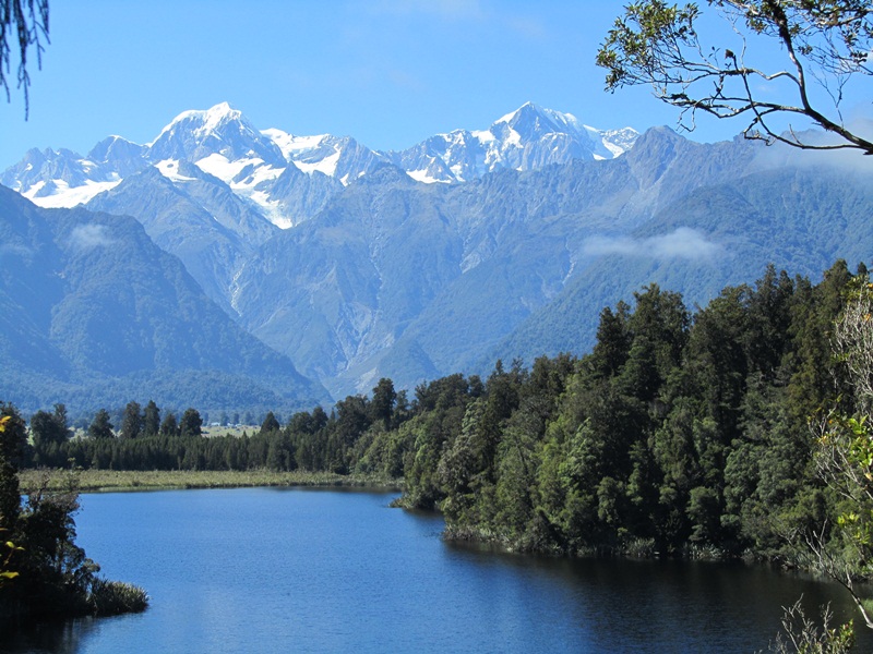 Zwischen diesen beiden Eisriesen liegen ca. 20km, die absolut unbesiedelt sind. Wo gibt es das noch bei uns? Kein Mensch lebt da, nur diese eine Straße schlängelt sich durch. Bevor wir den Fox Glacier besuchten machten wir noch eine kleine Morgenwanderung um den Matheson Lake, zum “View of Views”, wo das Spiegelbild des höchsten Berges Neuseelands, dem Mount Cook, bei gutem Wetter zu sehen ist – das haben wir zwar nicht gesehen, der Wind hat den See zu sehr bewegt, aber die Bush- Wanderung war wunderschön.