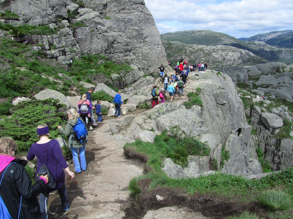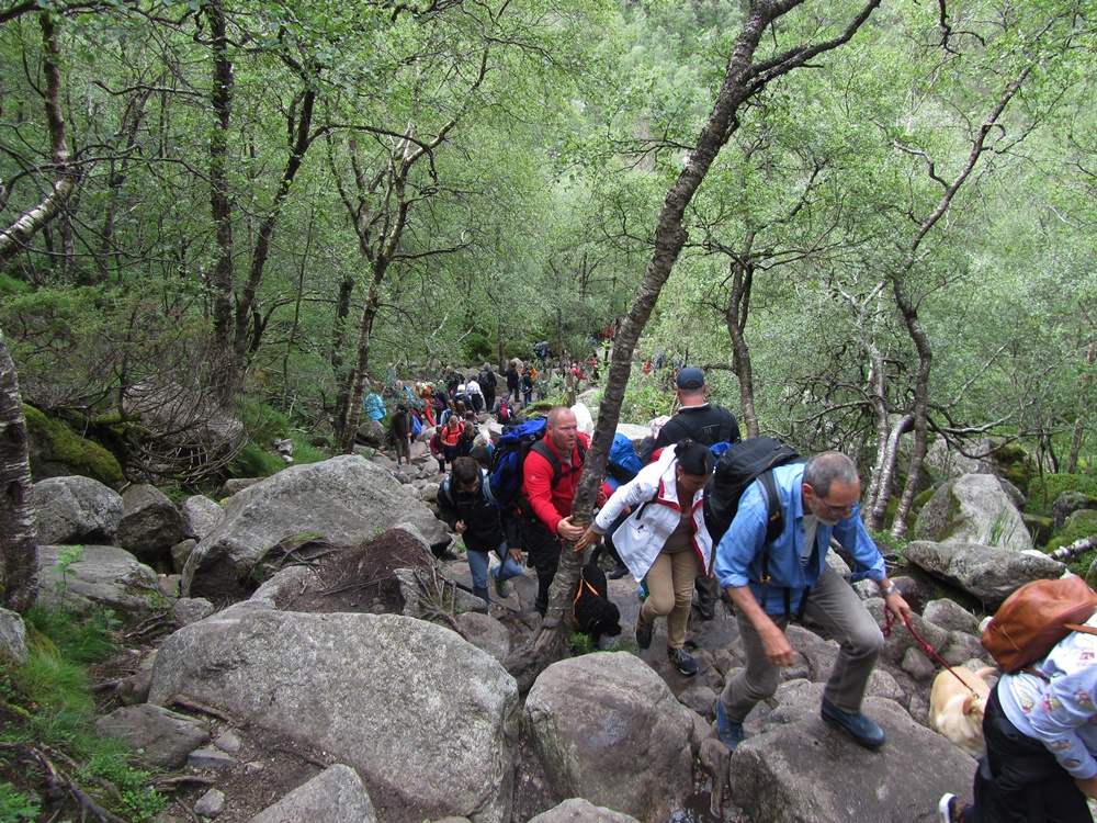 Ja, es begleiten uns Massen von Menschen zu diesem schönsten Aussichtspunkt, was sehr schade ist, denn wir nahmen diesen wirklich außergewöhnlich schönen, abwechslungsreichen, ca. 2-stündigen Weg zur Aussichtsplattform gar nicht richtig wahr, weil wir zum einen damit beschäftigt sind, die langsameren Wanderer zu überholen und zum anderen aufpassen müssen, dass wir mit den Schnelleren nicht kollidieren. An den steileren Stellen kommt es regelrecht zu Staus und so macht der Aufstieg nicht den Spaß, den man dabei haben könnte, bzw. den wir vor Jahren hatten. Hier mal ein paar Fotos, beginnen tun wir mit einem Foto von der auf einem Informationsschild beschriebenen Tour.