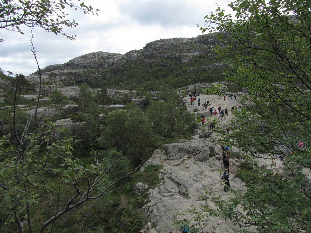 Wir wissen, dass es extra einen gebührenpflichtigen Parkplatz gibt. Was wir nicht wissen ist, wie groß dieser inzwischen ist. Hunderte PKW’s und bestimmt 200 Wohnmobile sind schon vor uns da … Wir ahnten ja sowas schon, denn gestern erzählte eine junge Frau, die schon oben war, dass sie ganz sicher sei, dass mehr Menschen auf dem Preikestolen als auf dem Machu Picchu waren.