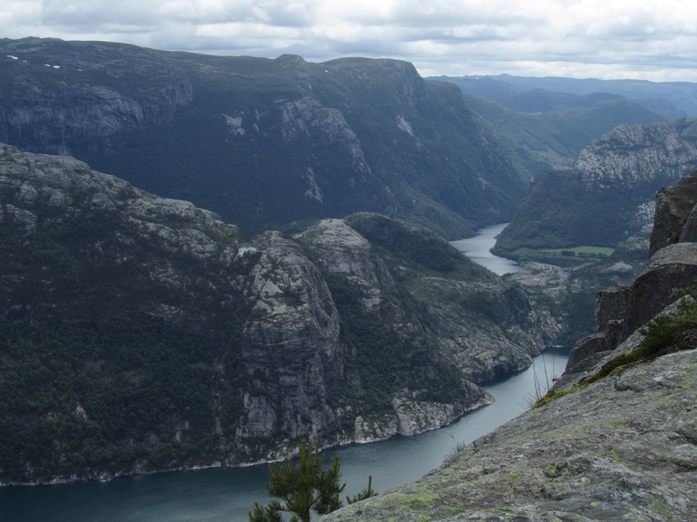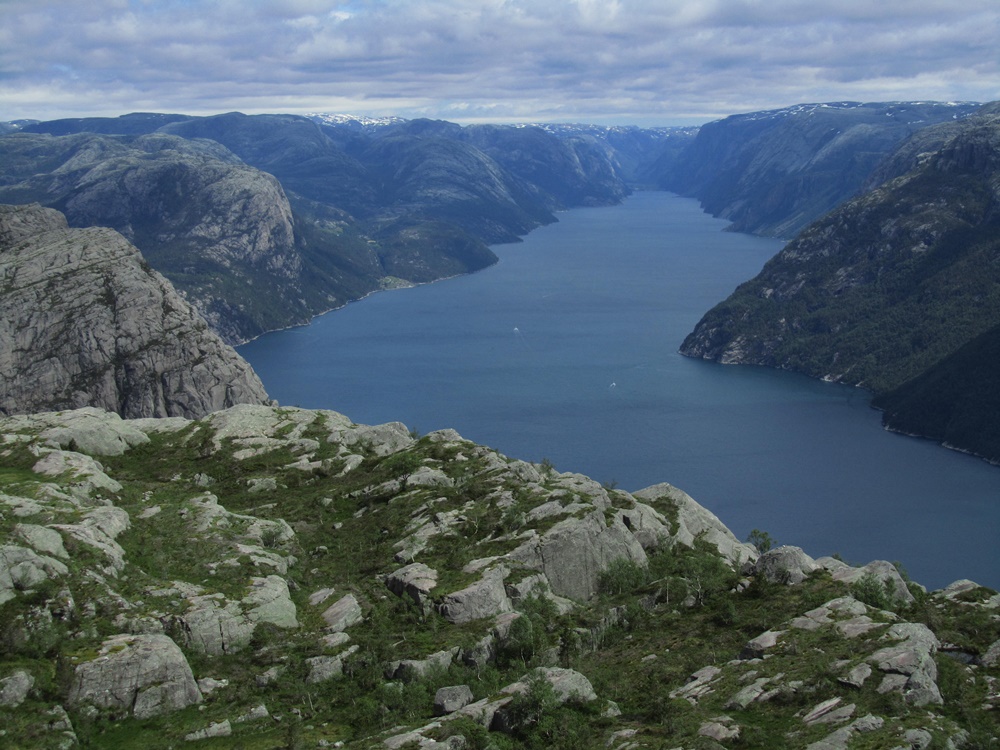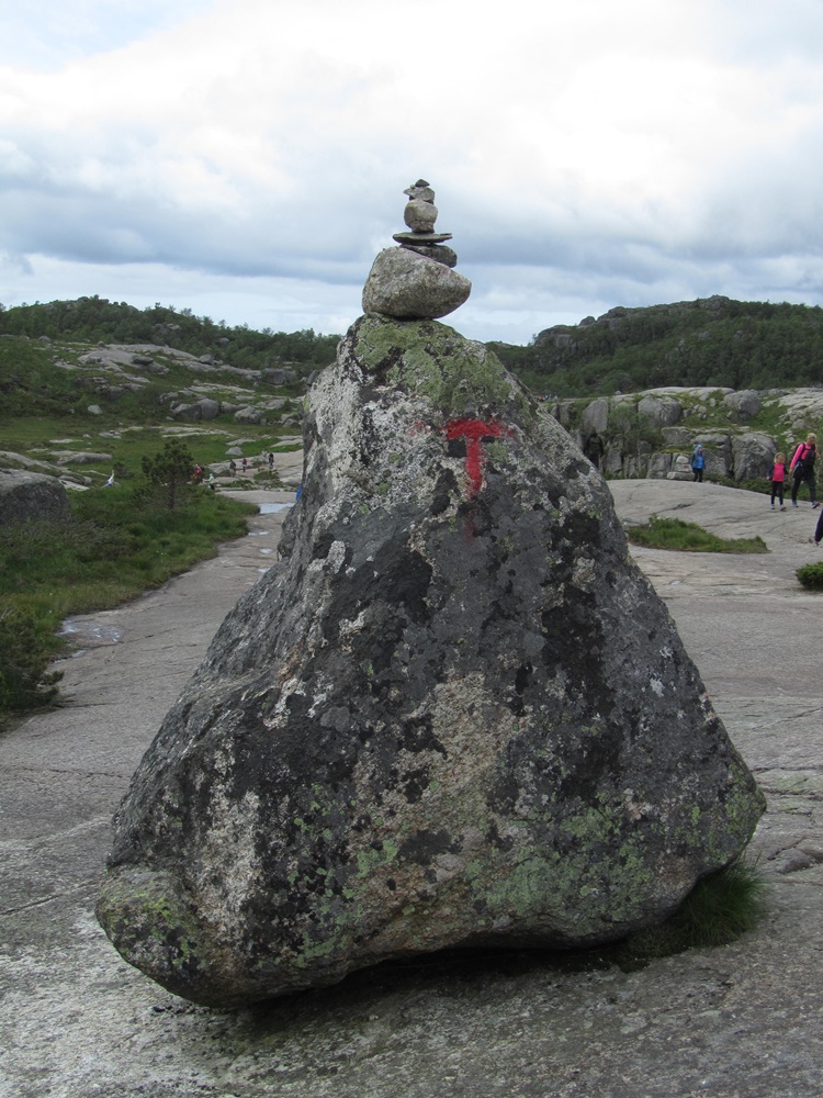 Und wenn man dann von dort oben in den Fjord hineinschauen kann, da hat sich alles gelohnt, was man vorher dafür getan hat. Unzählige Fotos und eine kleine Vesperpause später laufen wir auf dem Hochplateau wieder zurück, auf dem auch einige der beliebten Steinhäufchen gebaut wurden. Wir würden nur zu gerne wissen, wer den untersten Stein dahin gelegt hat …