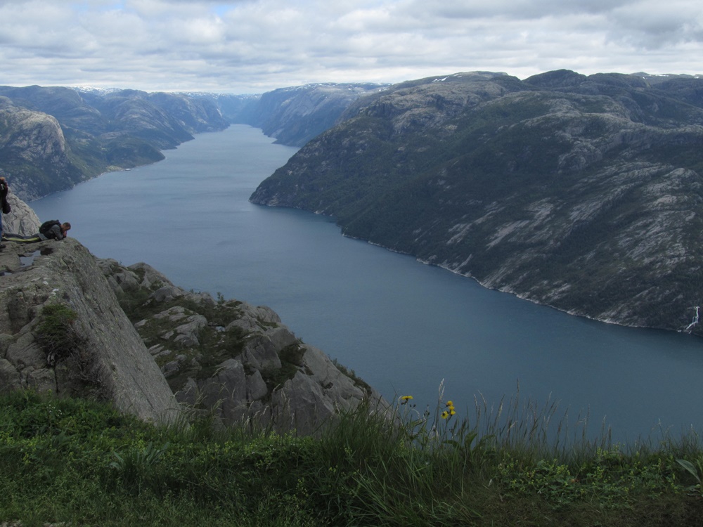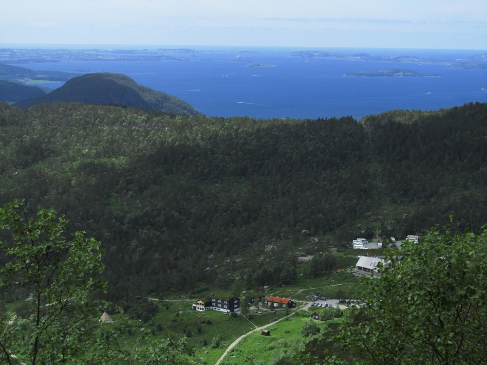 Vor der Besteigung des Preikestolen machen wir mal wieder Halt auf einem, übrigens sehr schönen weil ‚ungeordneten‘ Campingplatz. Will heißen, man kann sich hinstellen wie man mag. Zelte, Wohnmobile, Wohnwagen und Klein-Busse (ganz neue Pössl zum Beispiel oder auch uralte, romantische VW-Busse), sogar ein „Wüsten-Fahrzeug“ (so haben wir es wegen seiner riesigen, hochstehenden Reifen genannt), stehen kreuz und quer auf einer großen, mit Bäumen gespickten Wiese, am Rand schlängelt sich ein Bach entlang, an dem Kinder angeln. Herrlich! Hier füllen wir mal wieder unsere Vorräte auf und machen ein wenig Pause (es waren mindestens zwei Stunden, Paul behauptet, es war sogar mehr!).