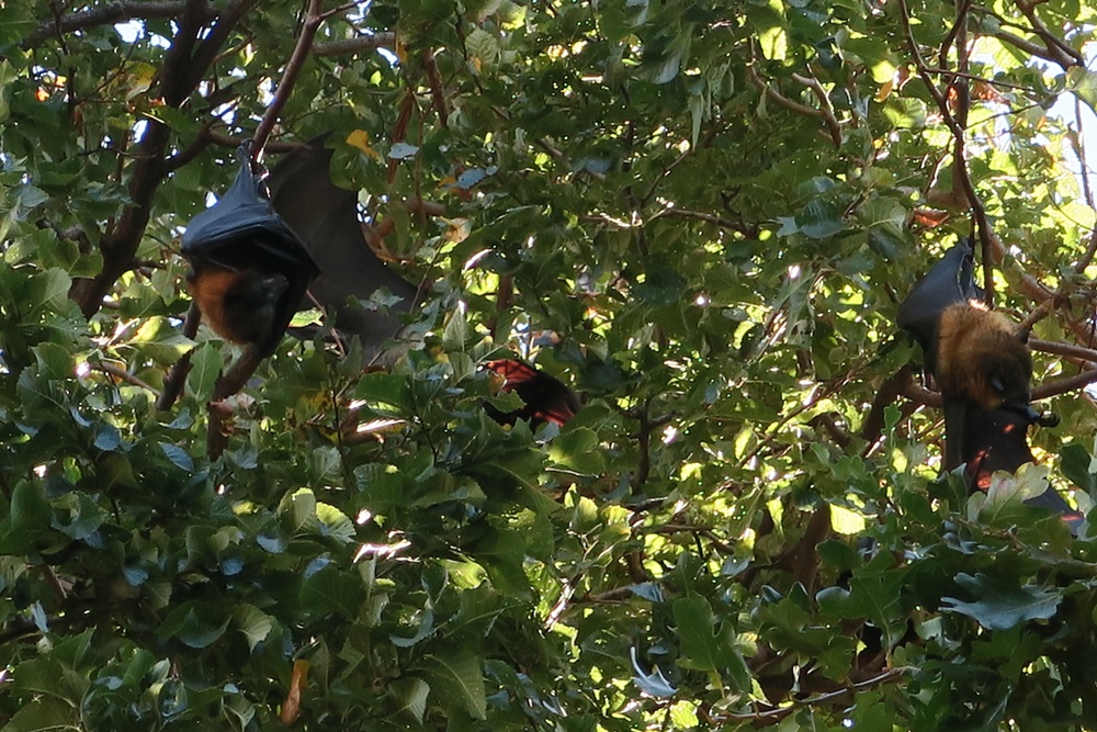 Den Rückweg zum Auto haben wir durch einen herrlich angelegten Park genommen, der uns zu einer weiteren tierischen Sensation geführt hat. Zwei Bäume voller Flughunde in einer Größe, die wir so bei uns noch nicht gesehen haben.
