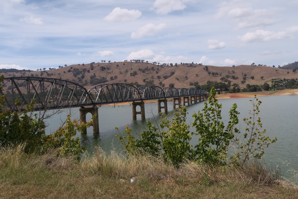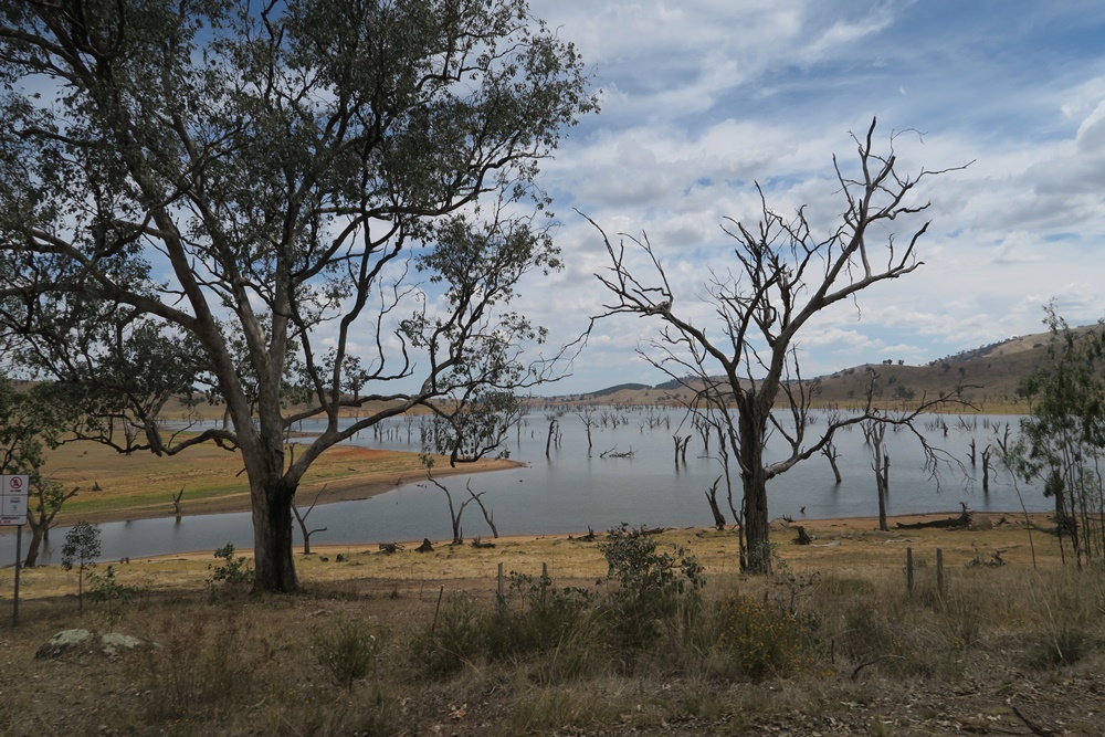 Auf der Strecke durch das sogenannte Bushland (für den Australier ist alles, was außerhalb der Städte liegt, also Wälder, Felder, Farmen und Weideland, Bushland), kamen wir an einem fast 50km langen Stausee vorbei, der noch dazu eine fast skurrile Besonderheit aufweist: aus ihm ragen lauter abgestorbene Baumkronen heraus. Das sieht ziemlich mystisch aus.