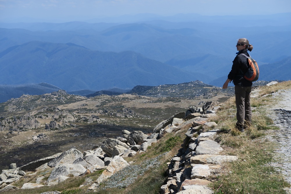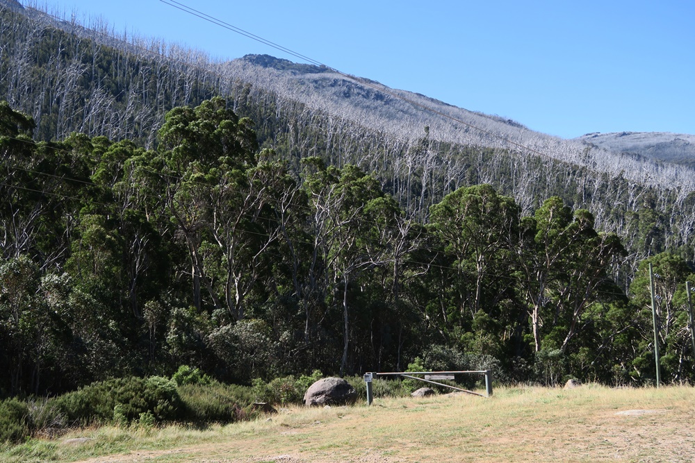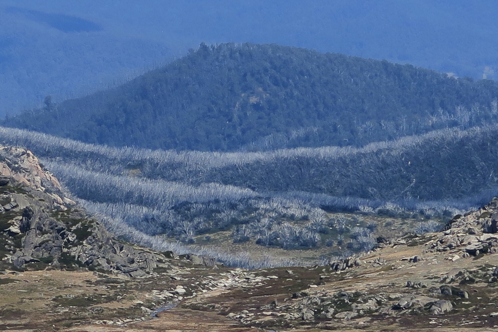 Auf eine ganz andere Art beeindruckend war beim Blick über die unter uns liegenden, subalpinen Wälder, mit ihren Schnee-Eukalyptusbäumen und Riesen-Eukalyptusbäumen. Zur Jahreswende der Jahre 2002/2003 litten sie unter verheerenden Bränden, die monatelang nicht zu kontrollieren waren. Dabei wurde die Hälfte des Nationalparks vernichtet.