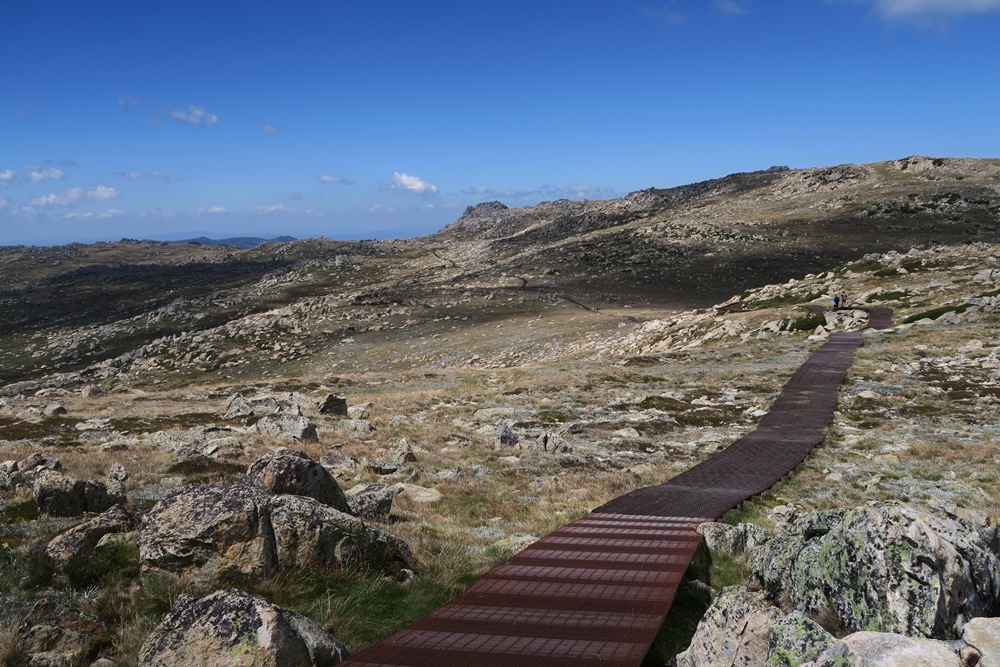 Auch wir haben uns nun in den Sessellift geschwungen, um von dort oben aus den 7km langen Weg zum Gipfel des Mount Kosciuszko zu erklimmen, was allerdings zwar eine lange Wanderung war, aber die Erreichung eines Gipfels doch so einfach wie noch nie eine andere war. Nämlich haben die Australier ihre gesamte Natur dort oben geschützt, indem sie fast den kompletten Weg mit auf Stelzen stehenden Stahlgittern versehen haben … Trotzdem das sehr eigenartig ist, hat uns der Gipfelmoment sehr viel Spaß gemacht und beeindruckt!