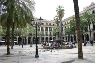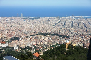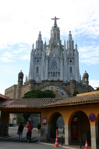 Am nächsten Morgen starteten wir zur großen Barcelonatour und begannen natürlich mit dem Flanieren über die Ramblas. Anschließend (und einen Cappuccino mehr) besichtigten wir das Viertel Eixample, das zur gleichen Zeit entstand, wie in Deutschland z.B. der Jugendstil, in Frankreich die Art Nouveau und in England und USA der Modern Style, in Italien der Liberty und in Österreich die Sezession. Die Besichtigung ist mehr architektonischer Art und deshalb biegen wir bald wieder ab ins echt spanische Leben und zwar ins Viertel El Raval. Dieses ehemalige Rotlichtviertel, früher von den Seeleuten das chinesische Viertel (nicht, weil hier so viele Chinesen gewesen wären, sondern weil alles so eng und voll wie in China ist) genannt, wurde von der Regierung versucht, auch reicheren Gesellschaftsschichten schmackhaft zu machen, um die Atmosphäre zu verbessern. Dies ist nicht ganz gelungen, aber es hat unserer Meinung nach einen besonderen Charme behalten (laut Reiseführer sollte man nicht in der menschenleeren Siesta-Zeit oder nachts durch die schmalen Gassen laufen?). Anschließend liefen wir noch durch das Viertel La Rivera, das wir von unserem letzten Besuch mit seinen schmalen Gassen, vielen Museen und blumengeschmückten schmiedeeisernen Balkonen noch so wunderschön in Erinnerung hatten. Auch diesmal genossen wir Barcelonas Zentrum sehr, machten uns aber auch noch auf den Weg zum Tibidabo, dem 512m hohen Hausberg Barcelonas. Den höchsten Punkt bildet die Kirche El Sagrat Cor. Man kann von ihrer Jesusstatue aus (für 2 Euro mit dem Aufzug zu erreichen), die auf dem Dach platziert ist, den besten Blick auf die Stadt und auf den Höhenzug der Sierra de Collserola genießen.