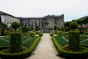 Am nächsten Tag fuhren wir auf Empfehlung von unserer Berliner Bekanntschaft aus Lissabon weiter ins Douro-Tal, am Fluss entlang, und fanden wunderschöne Weingebiete mit Terrassen voller Wein, die allesamt für Porto und seinen Portwein angebaut werden. Mit am Schönsten, landschaftlich, war die Überquerung eines Passes in Höhe von 1381m und die Anbaugebiete zwischen Peso de Regua und Vila Real, die immer wieder von Olivenbäumen unterbrochen waren. Unterwegs besichtigten wir in Lamego eine Kirche mit einem effektvollen Treppenaufgang, in Vila Real kauften wir in einem urigen Laden noch mal Wein. Im nächst größeren Ort Guimaraes besichtigten wir eine wunderschöne Burganlage und bummelten durch den historischen Ortskern, der mit vielen unregelmäßig angeordneten Plätzen damals eine neue Stadtgestaltung begründete. Nun stand noch Braga an, das mit seinem Wallfahrtsberg und der Kirche Bom Jesus über alle Grenzen bekannt ist. Aber das Wetter machte uns einen Strich durch die Rechnung. Es regnete! Gerade in der Zeit, als in Mannheim die 35 Gradmarke überschritten war, war?s hier kühl, neblig und regnerisch. So sparten wir uns die 500 Stufen hinauf auf den Berg und fuhren mit dem Wohnmobil nach oben und haben nur die letzten vielleicht 200 Stufen hinab- und hinauferklommen. Die Stadt jedoch mussten wir uns noch unbedingt ansehen, damit wir alle Städte des folgenden portugiesischen Sprichwortes gesehen haben: ?In Porto wird gearbeitet, in Coimbra studiert, in Lissabon gelebt und in Braga gebetet.? Nun, das zu beurteilen steht uns natürlich nicht zu.